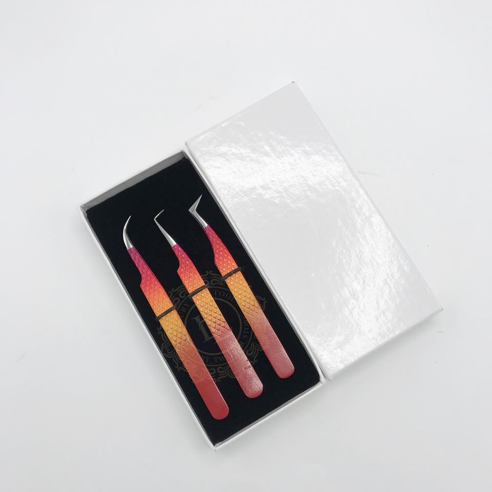 Pinzas para pestañas con punta plateada y revestimiento en polvo personalizado de calidad superior, caja de Tarjeta blanca ecológica de acero inoxidable de nuevo diseño