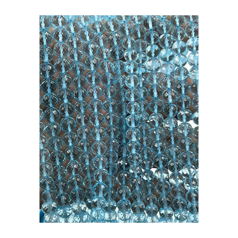 Cuentas redondas facetadas de Topacio Azul Natural de calidad superior personalizadas, hebra de 6-9mm de aproximadamente 8 pulgadas para la fabricación de joyas