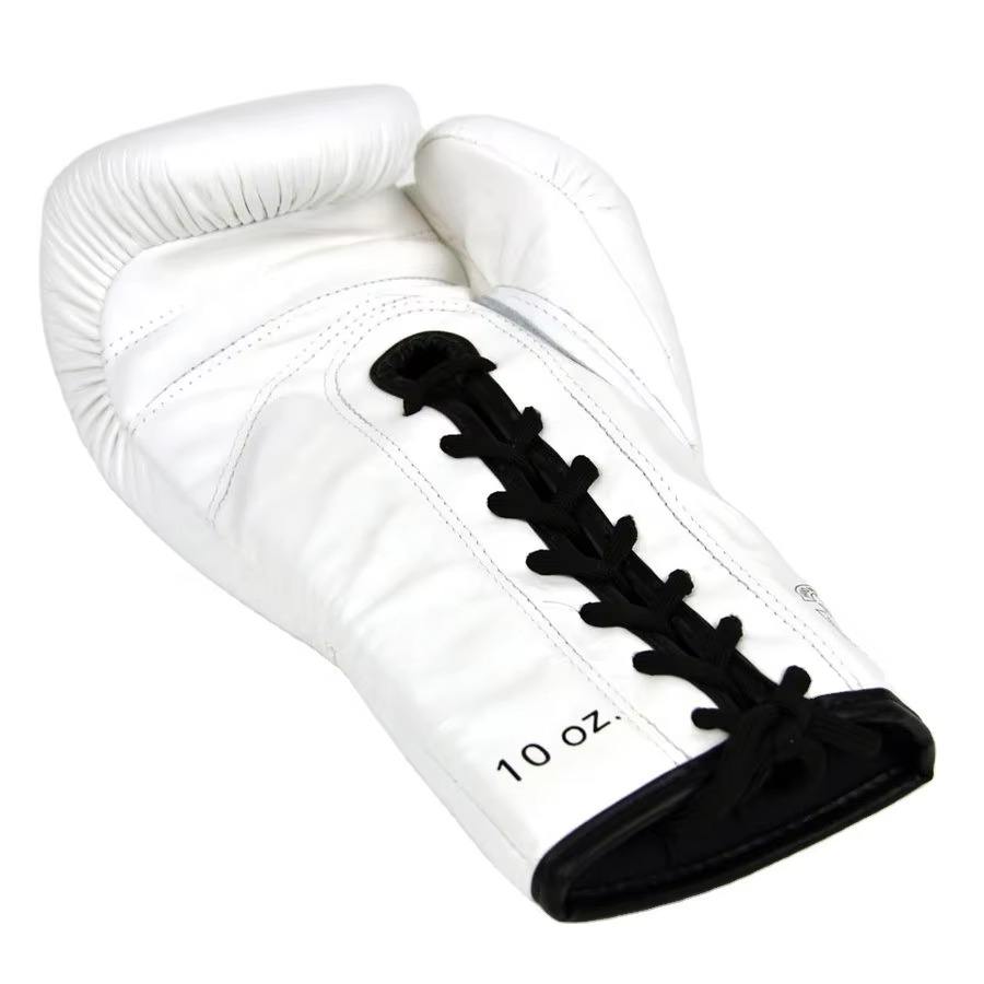 Guantes de boxeo con estampado personalizado Fairtex Glory White Guantes de boxeo Muay Thai con cordones de alta calidad Guantes de entrenamiento profesional OEM