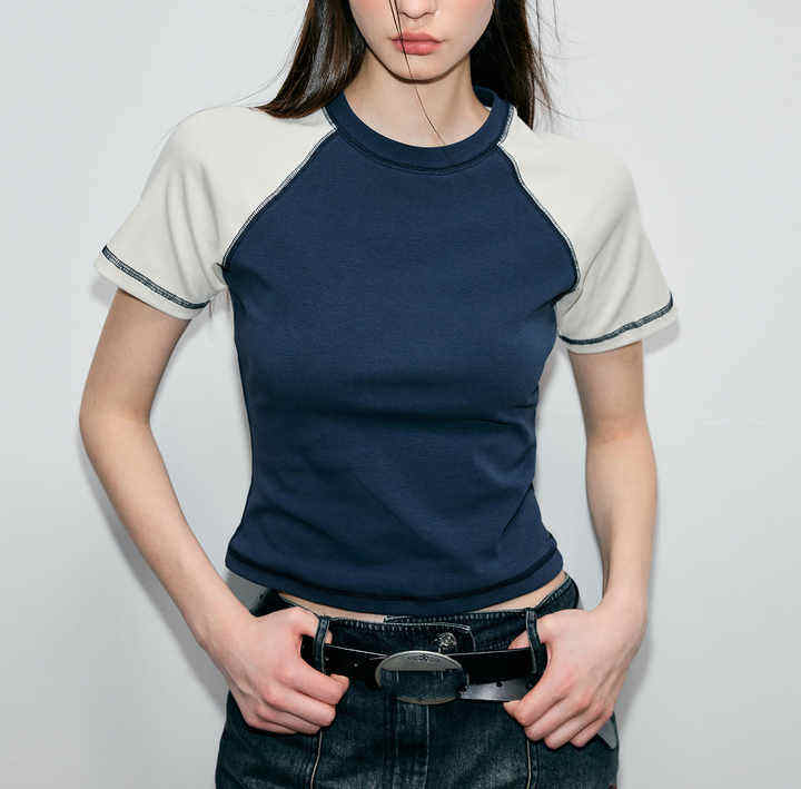 Camiseta de manga corta con cintura bordada estampada personalizada para mujer Top raglán ajustado 2024