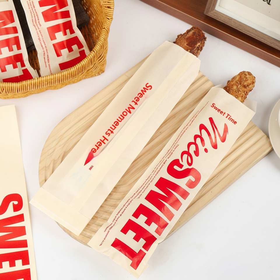 Bolsa de Embalaje de Alimentos Personalizada con Impresión, Bolsa de Papel Kraft Resistente al Aceite para Panadería, Baguettes y Productos de Panadería Crujiente
