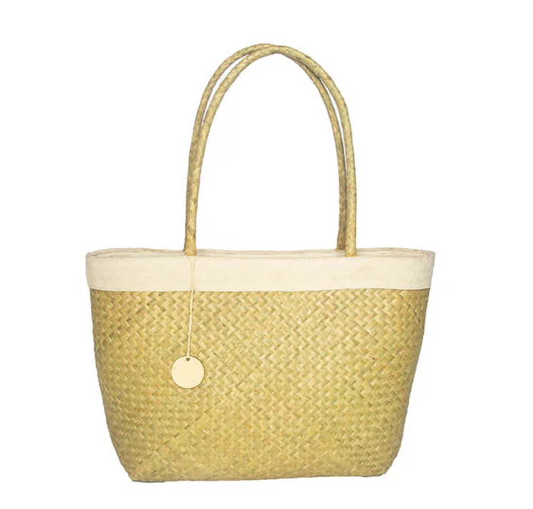 Bolsos de playa de cuero PU personalizados con cierre de cremallera de estilo natural y dos asas impreso bolsas de compras logotipo buen precio
