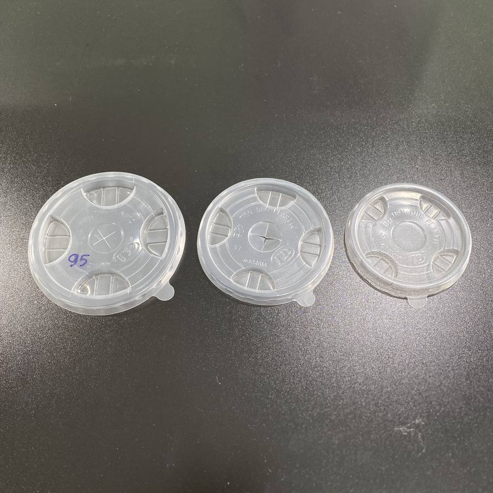 Tapas de plástico PP PET impresas personalizadas de 75/85/90/93/95/120mm de diámetro desechables de fabricante VN, tapas planas de cúpula para vasos de plástico