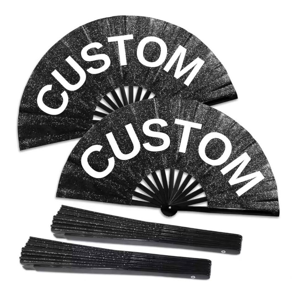 Impresión personalizada decoración negro Rave personalizado grande de madera plegable boda bambú ventilador de mano personalizado