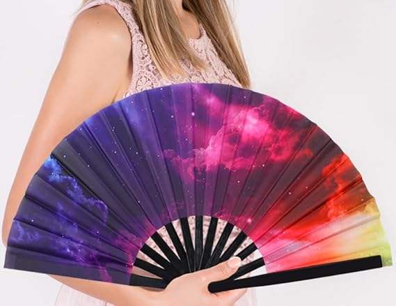 Abanico de mano grande de bambú con impresión personalizada, plegable, para fiestas, con diseño icónico, tipo Shade Bye, estilo chino