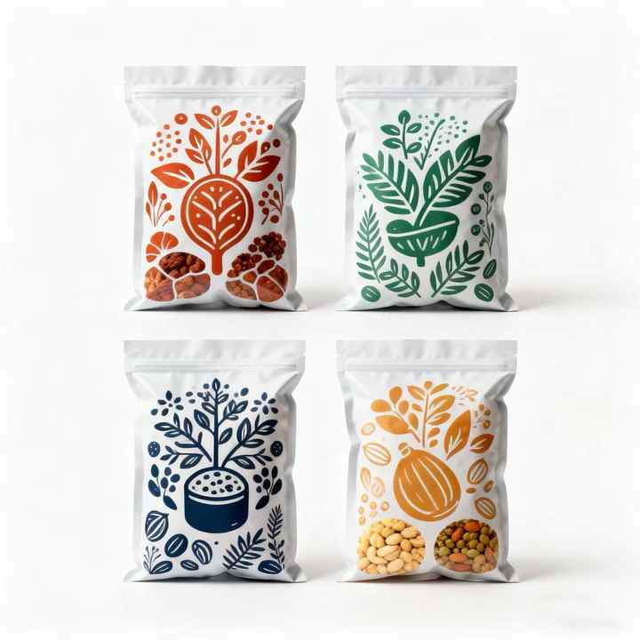 Nombre del producto:Bolsa de alimentos de plástico de alta calidad con aluminio, sellado en tres lados y cierre zip.