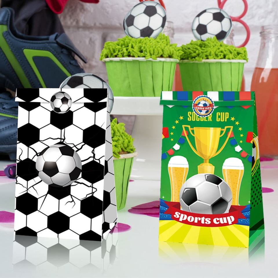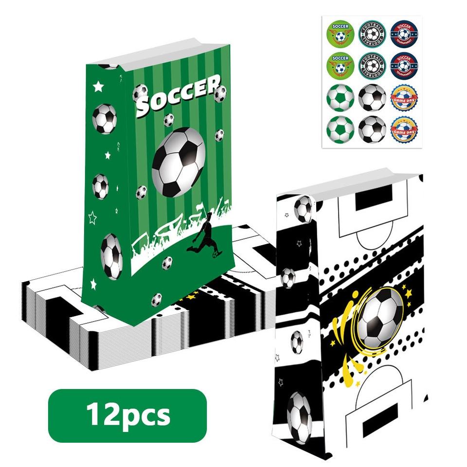 Juego de bolsas de regalo de papel kraft con pegatinas de diseño de campo de fútbol