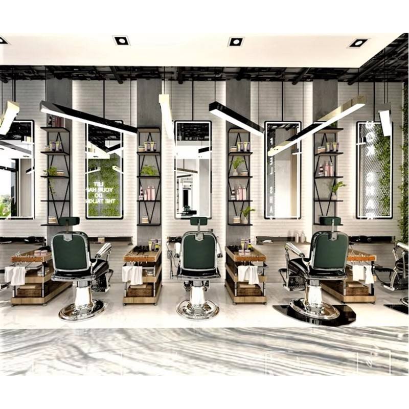 Diseño personalizado de barbería profesional, muebles de lujo para salón de belleza, juego de espejos, decoración de peluquería, renovación.