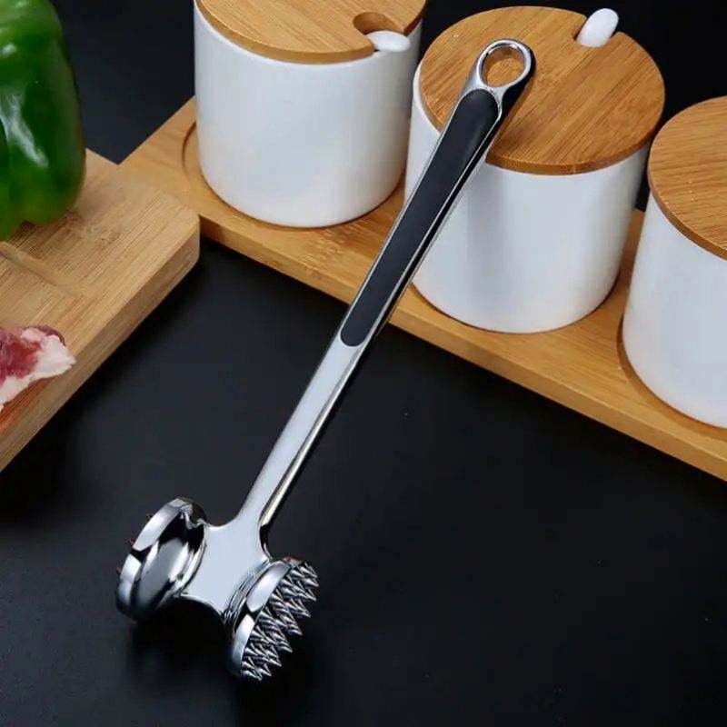 Ablandador de carne de pollo de acero inoxidable de doble cara para cocina profesional personalizado al por mayor con mango de agarre cómodo