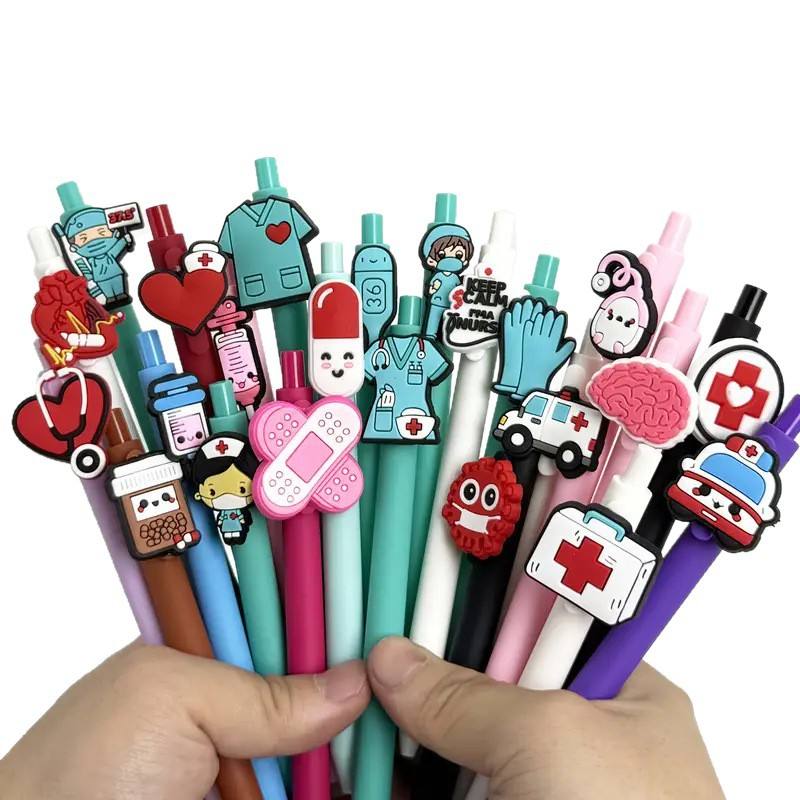 Bolígrafo promocional personalizado de PVC con dibujos animados para niños y adultos, escritorio de oficina, accesorios de papelería para volver a la escuela, bolígrafos personalizados
