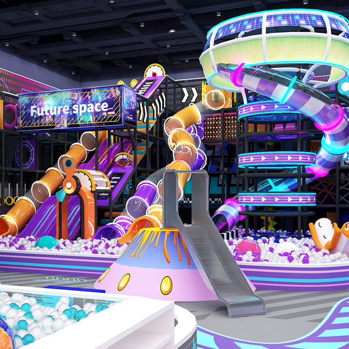 Equipo de Juegos Interior Personalizado con Temática Punk Cibernética, Piscina de Pelotas, Toboganes LED, Estructuras de Escalada, Materiales de PVC/Vinilo