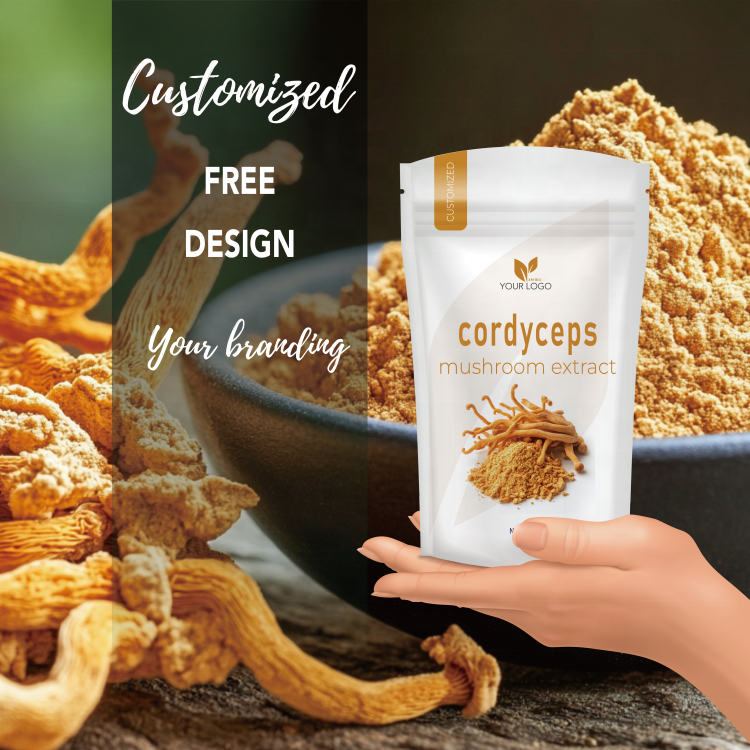 Polvo de extracto de Cordyceps puro personalizado para energía Natural y vitalidad Polvo de hongo Cordyceps superalimento a base de plantas