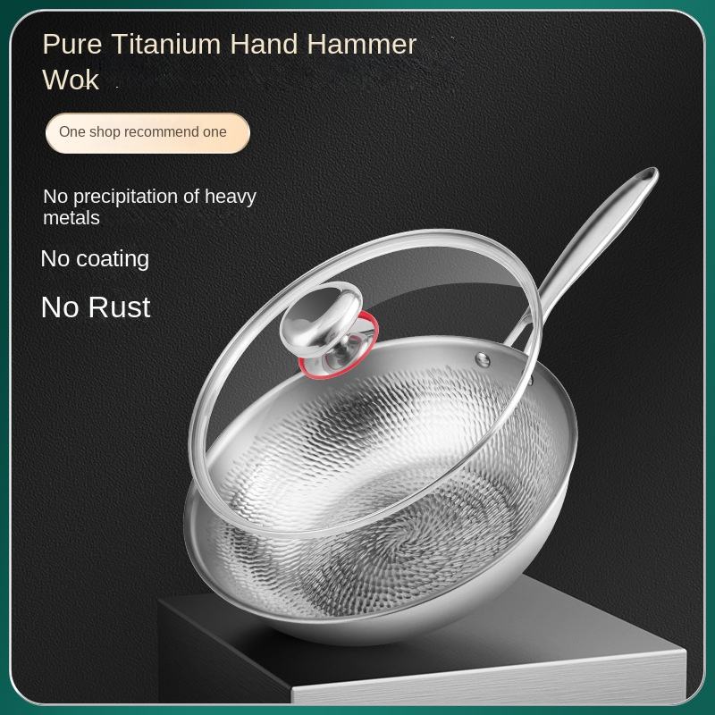 Wok de titanio puro personalizado olla de textura martillada a mano sin revestimiento Wok Cocina de Inducción Compatible Universal