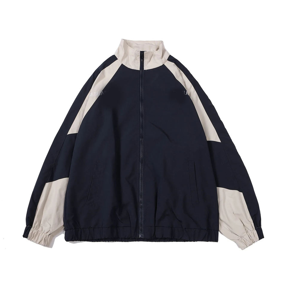 Chaqueta cortavientos de lluvia personalizada-Panel negro de último estilo con chaquetas cortavientos lisas unisex de color azul