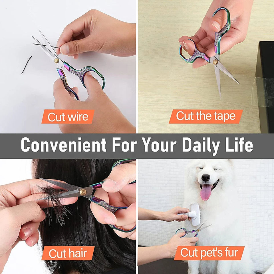 Tijeras de Bordado Personalizadas con Recubrimiento de Titanio Arcoíris, Hojas de Acero Inoxidable Duraderas, Borde Liso, Punta Afilada