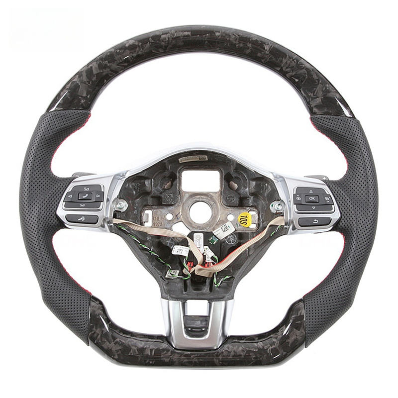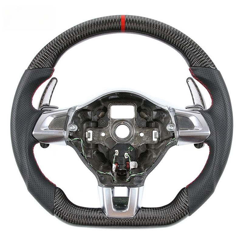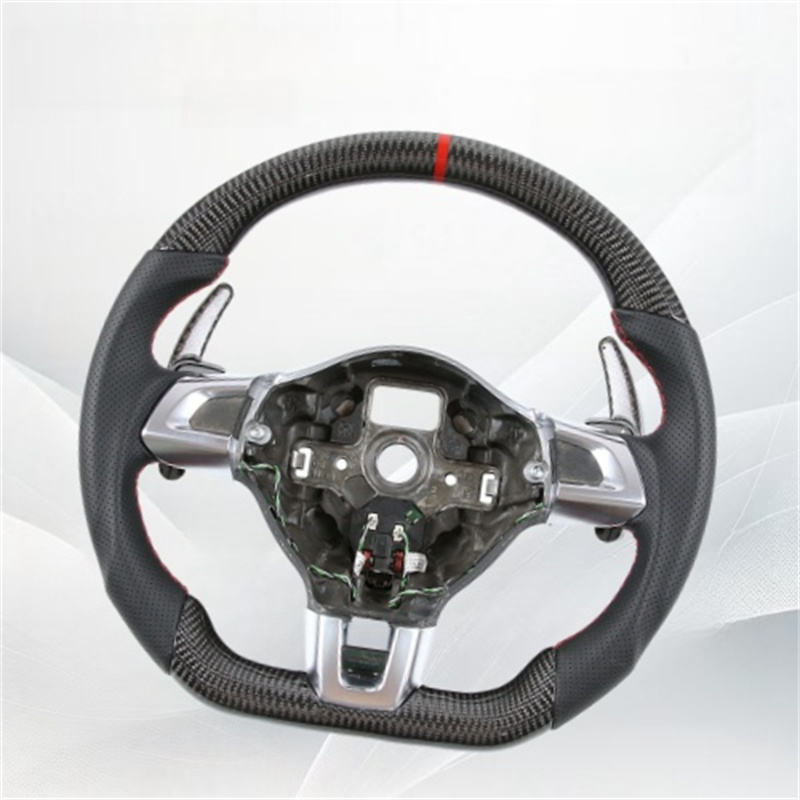 Volante de fibra de carbono Real personalizado, accesorios de coche para Volkswagen VW Golf GTI MK6 6R, volante de cuero