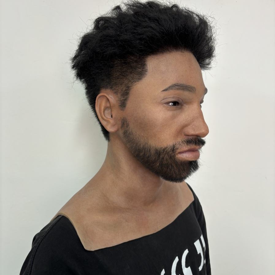 Máscara de silicona realista personalizada para cosplay, con boca abierta y diseño de cabeza desnuda completa