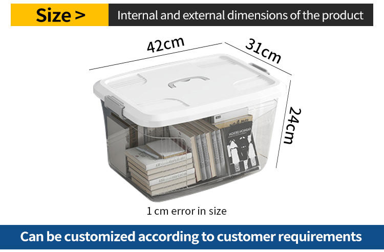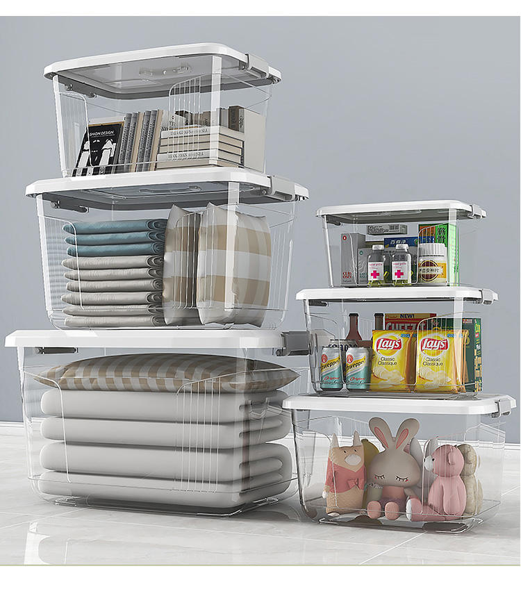 Caja de Almacenamiento de Plástico Transparente Rectangular Personalizada de Gran Capacidad con Tapa y Asa para Guardar Refrigerios, Libros, Ropa, etc.