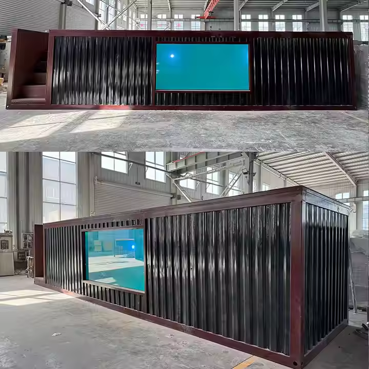 Contenedor de pie de fibra de vidrio rectangular personalizado para casa de huéspedes de estilo villa con piscina al aire libre