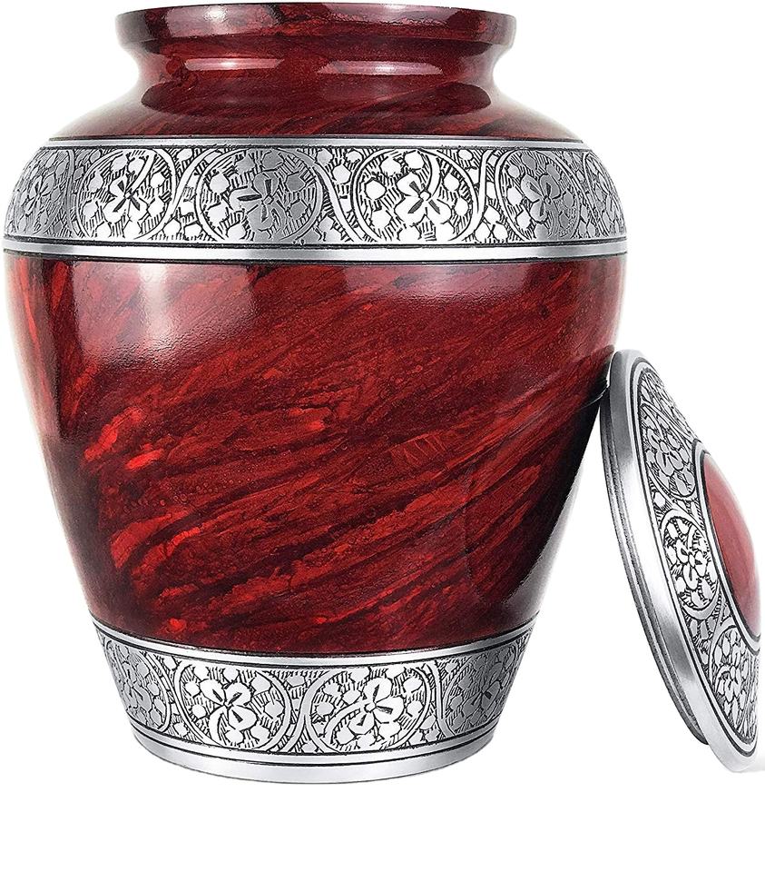 Urnas de cremación de aluminio de Color rojo personalizadas, urnas conmemorativas para adultos de estilo americano, decoraciones funerarias con estampado de flores coloridas