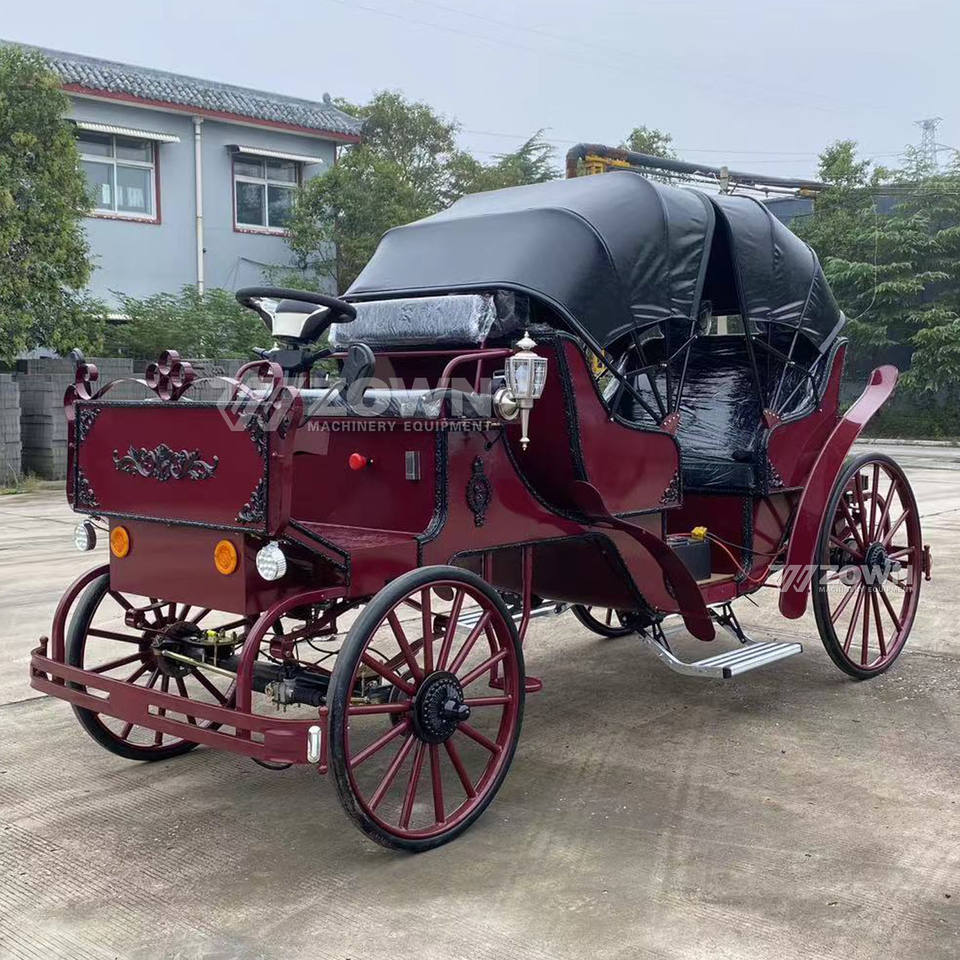 Carruaje de Caballos Personalizado de Color Rojo para Bodas con Toldo, Vagoneta Turística, Carruaje Real Eléctrico de Caballos en Venta