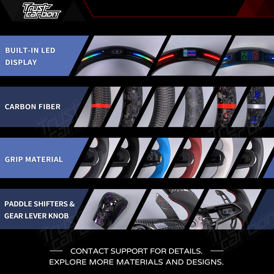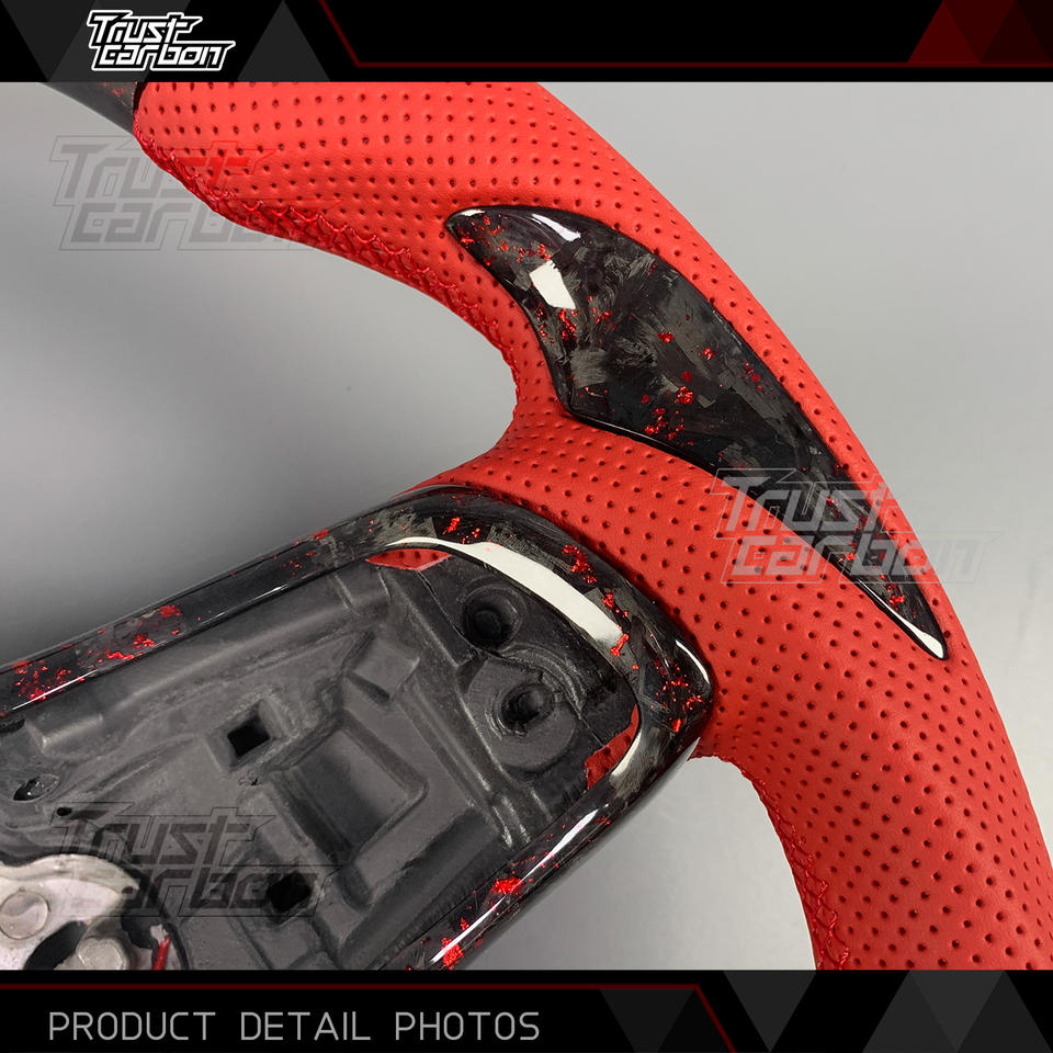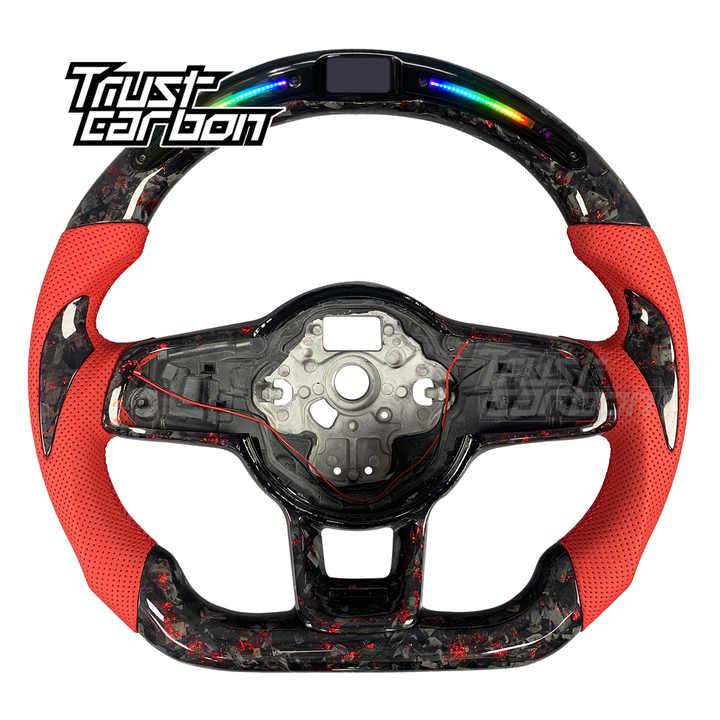 Volante Deportivo Personalizado de Fibra de Carbono Forjado Rojo con LED para Volkswagen VW Golf MK7 GTI R Jetta GLI Tiguan Scirocco R 2015-2019