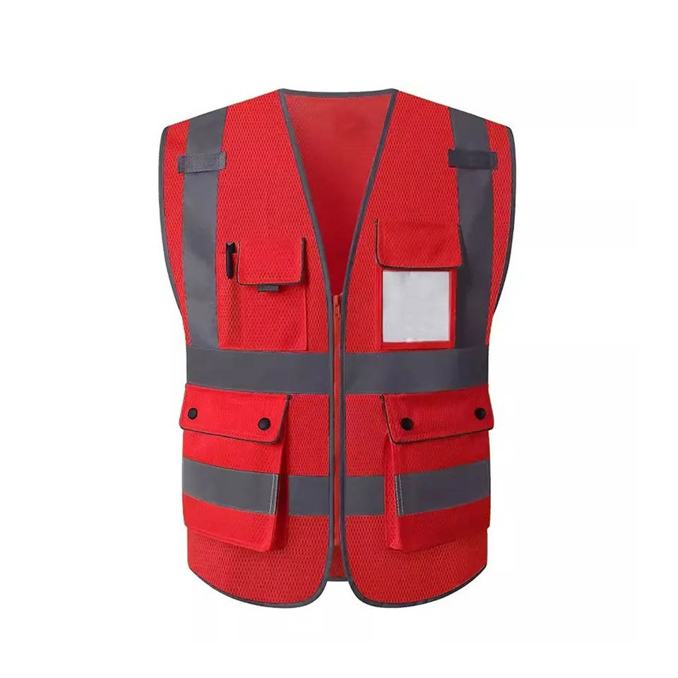 Chaleco DE SEGURIDAD reflectante gris rojo personalizado cremallera de poliéster y tela de utilidad con diseño impreso
