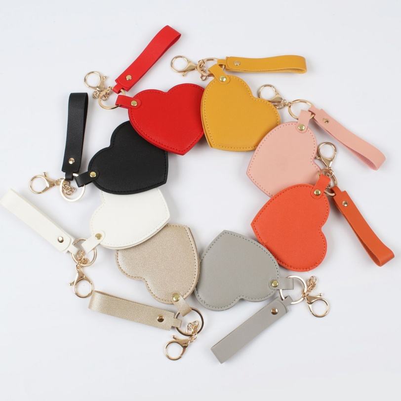 Espejo de Maquillaje Portátil Personalizado con Forma de Corazón Rojo en Relieve, de Cuero PU, con Llavero
