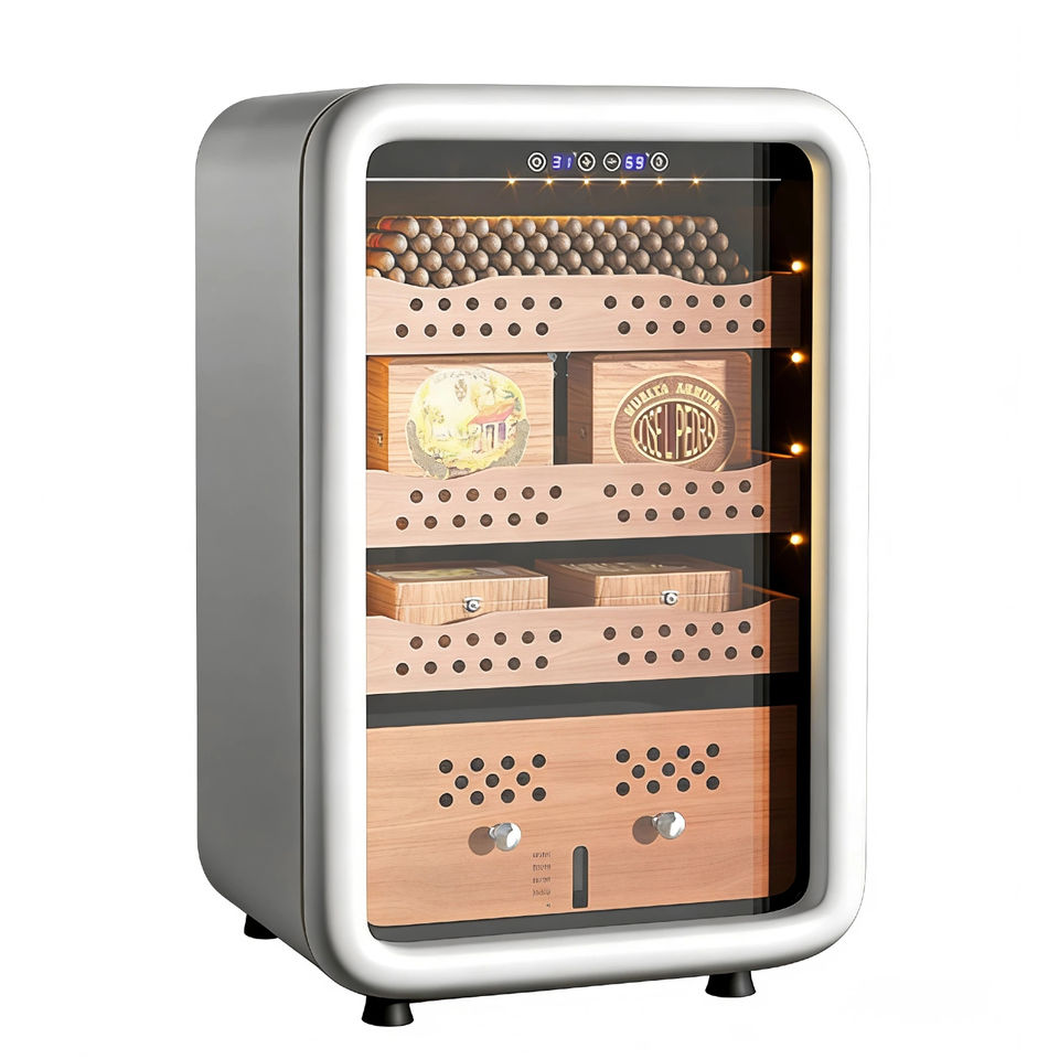 Customized Red Home Curved Edge Rounded Cigar Cabinet 500 Cigar Compressor Air Cooled 150L Cigar Box