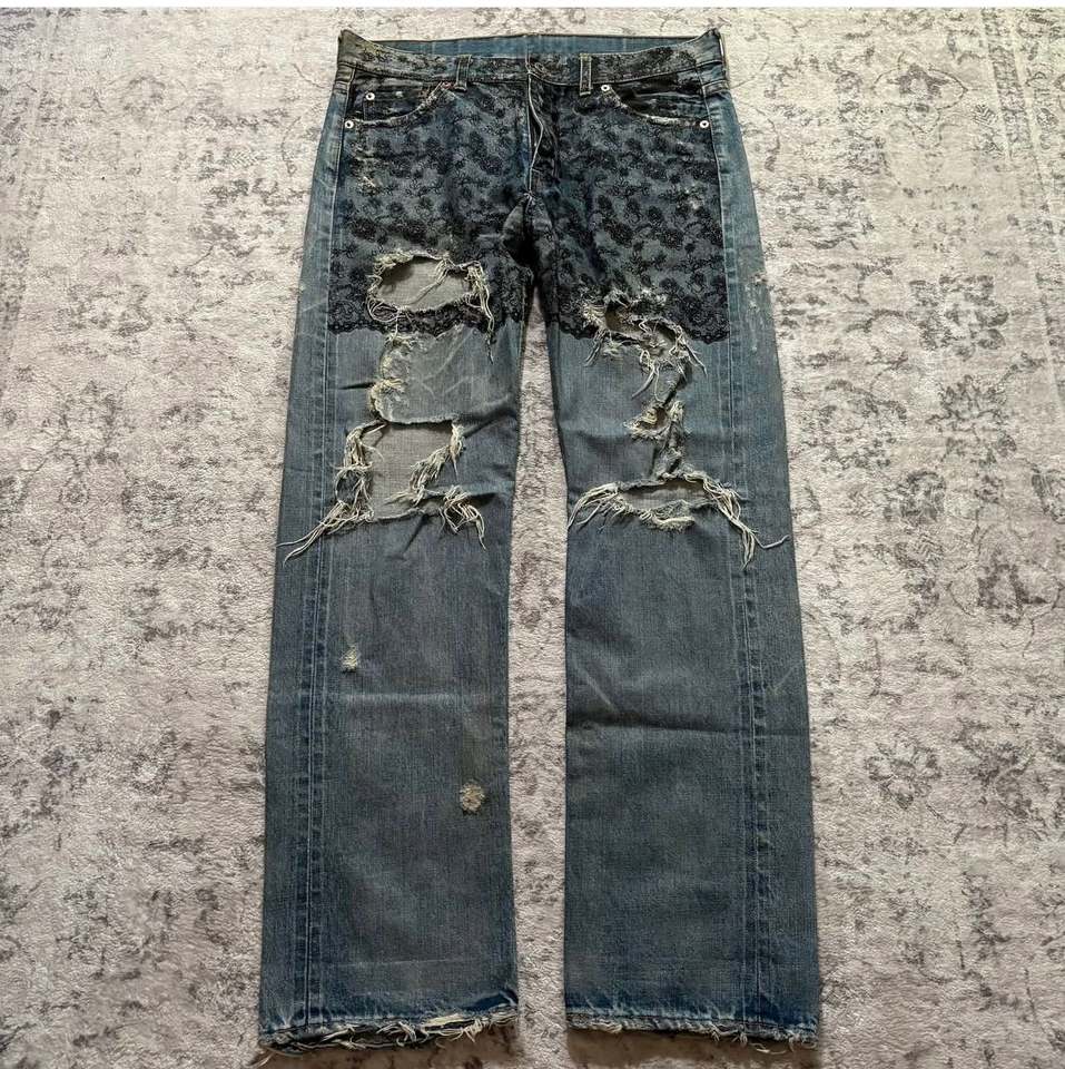 Pantalones acampanados de diseño personalizado con efecto de fricción para reparar bigotes de gato