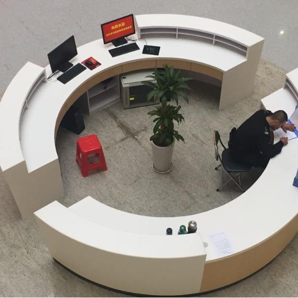 Recepción cosmética redonda personalizada Escritorio de recepción de hospital Mesa redonda de recepcionista de hotel Mostrador médico