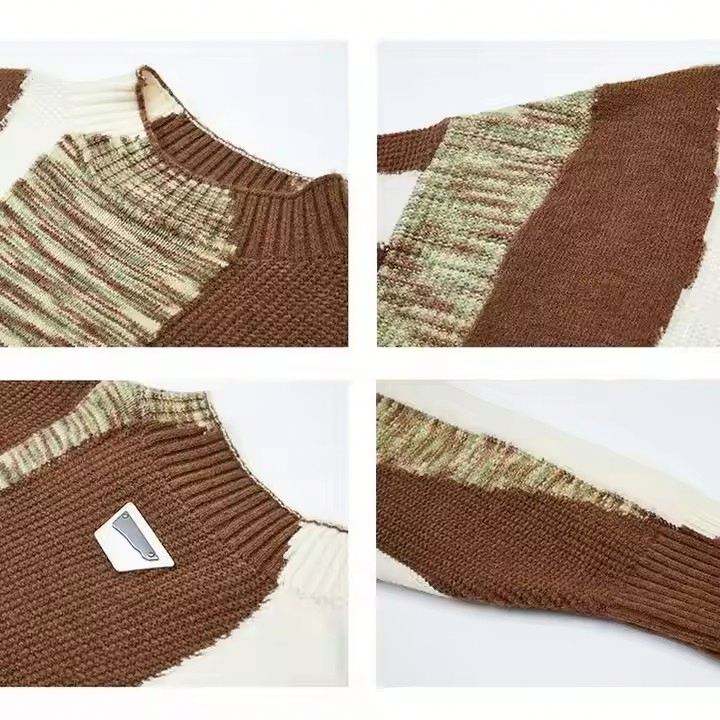 Suéter de moda de manga larga con cuello redondo personalizado, suéter de punto borroso, suéter de Jersey para hombres