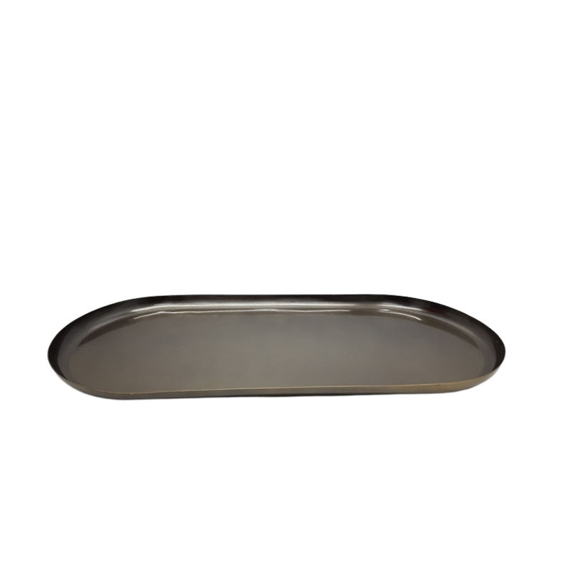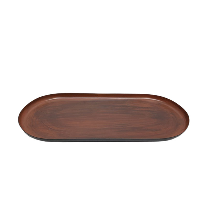 Bandeja de servicio de vajilla de hierro de Color de madera rústica personalizada, pedido a granel para Decoración de mesa de boda, bandeja ovalada
