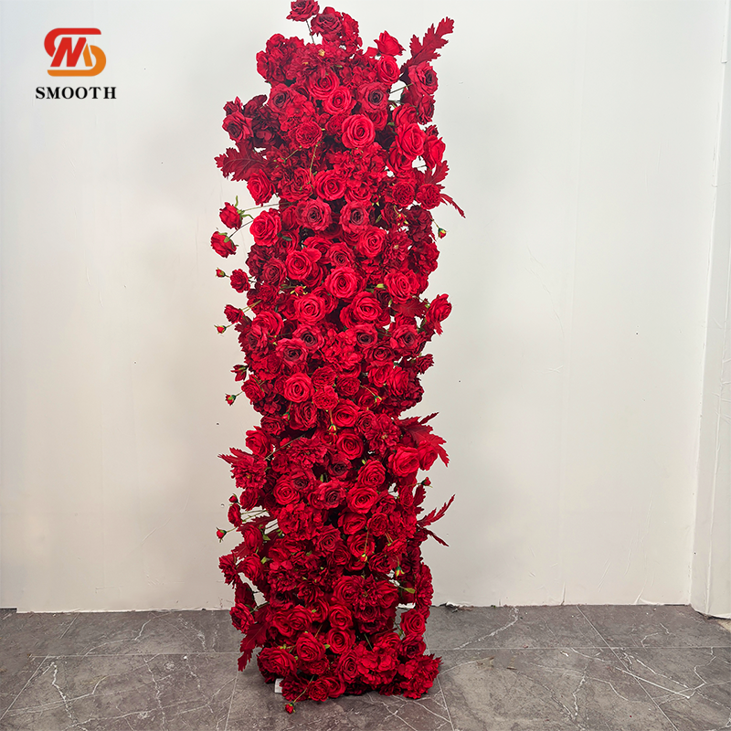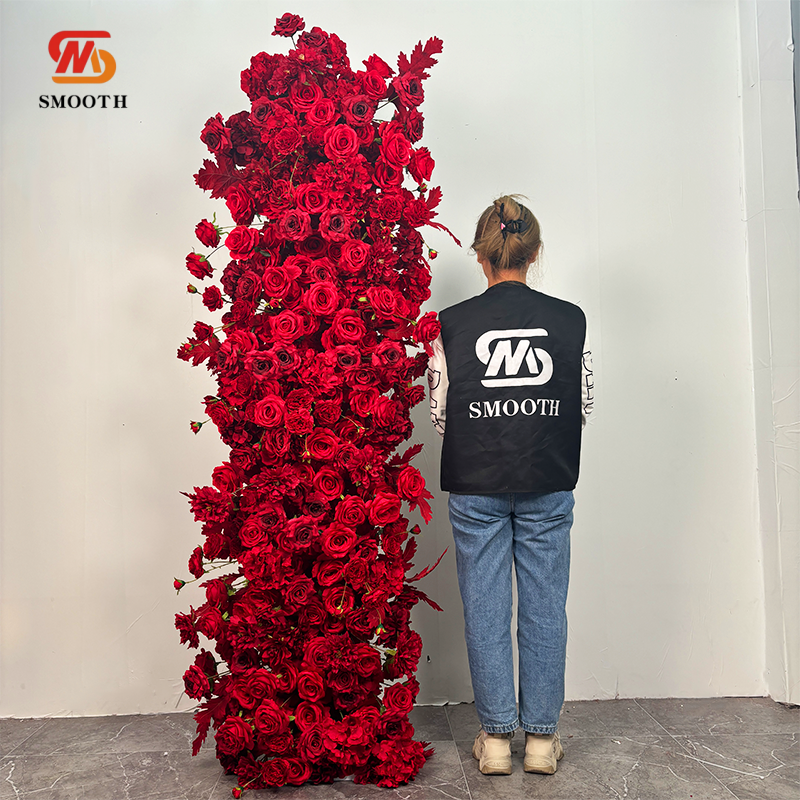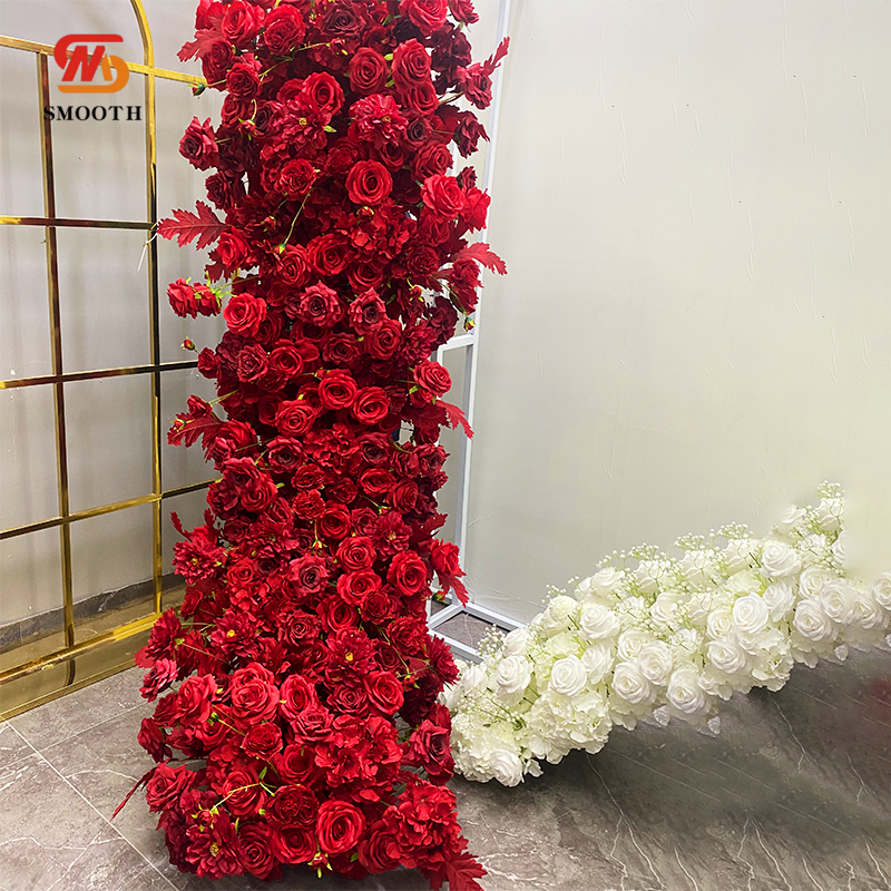 Corredor de flores rojas artificiales suaves personalizado para decoración de pasillo de escenario de boda para Arreglo de suelo del Día de San Valentín