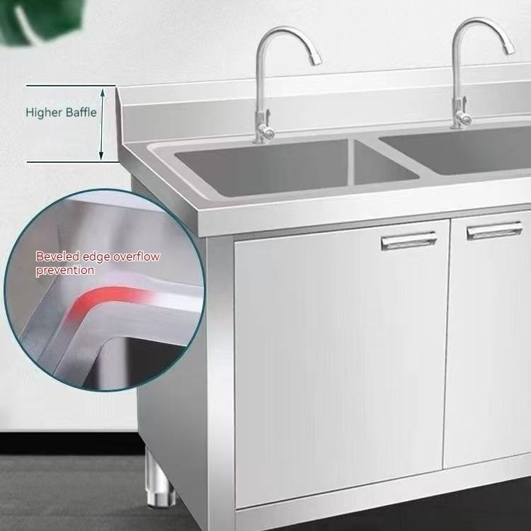 Fregadero Doble de Acero Inoxidable SS 304 Personalizado, Fregadero de Cocina Comercial para Restaurante con Mueble y Puerta con Bisagras