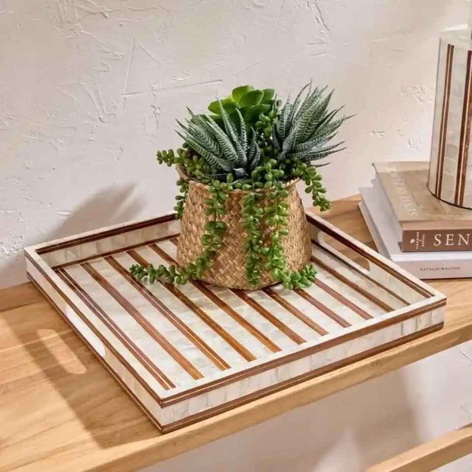 Bandeja Decorativa de Resina con Incrustaciones de Hueso, Forma y Tamaño Personalizados, para Servir Alimentos y Frutas, Bandeja de Madreperla para el Hogar