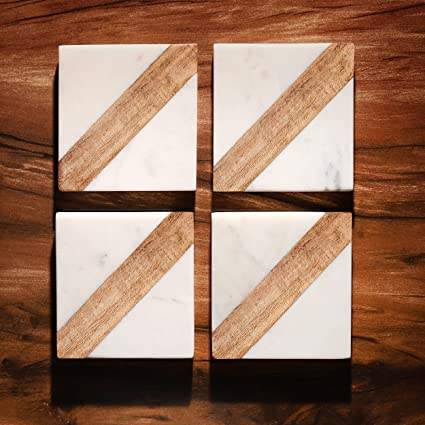 Posavasos de mármol blanco con forma personalizada con lámina dorada en los lados Posavasos de nogal blanco Posavasos de té de mármol Diseño en forma de corazón