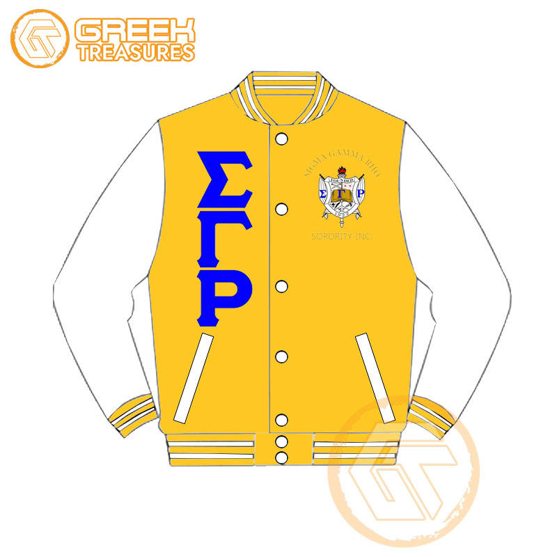 Chaqueta universitaria transpirable acolchada impermeable bordada de satén Sigma Gamma Rho personalizada para mujer-GREEK TREASURES
