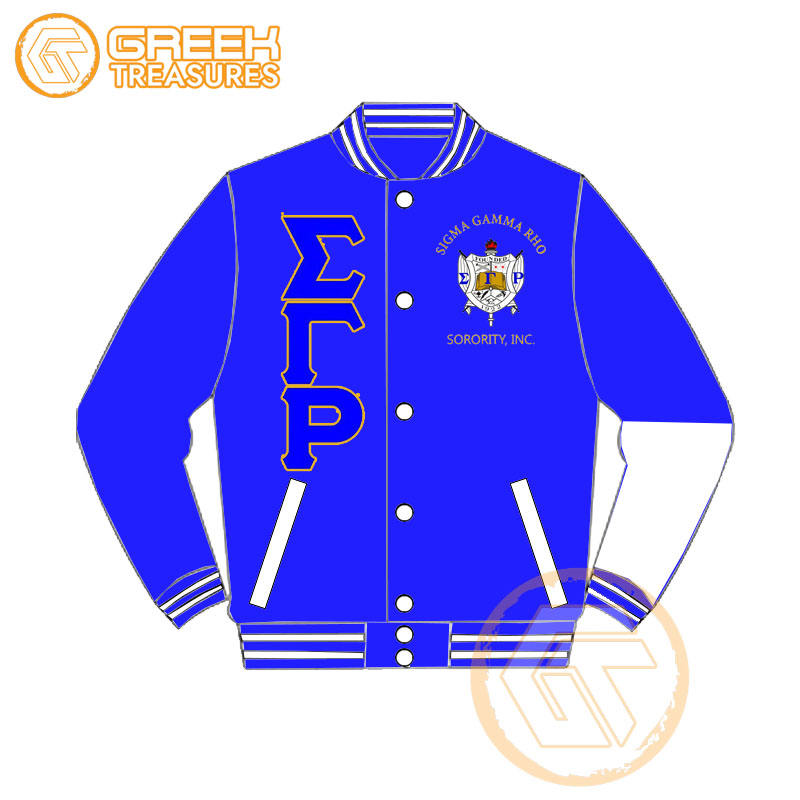 Personalizado Sigma Gamma Rho Satén Bordado Acolchado Impermeable Transpirable Varsity Jacket Sorority Ropa griega de alta calidad