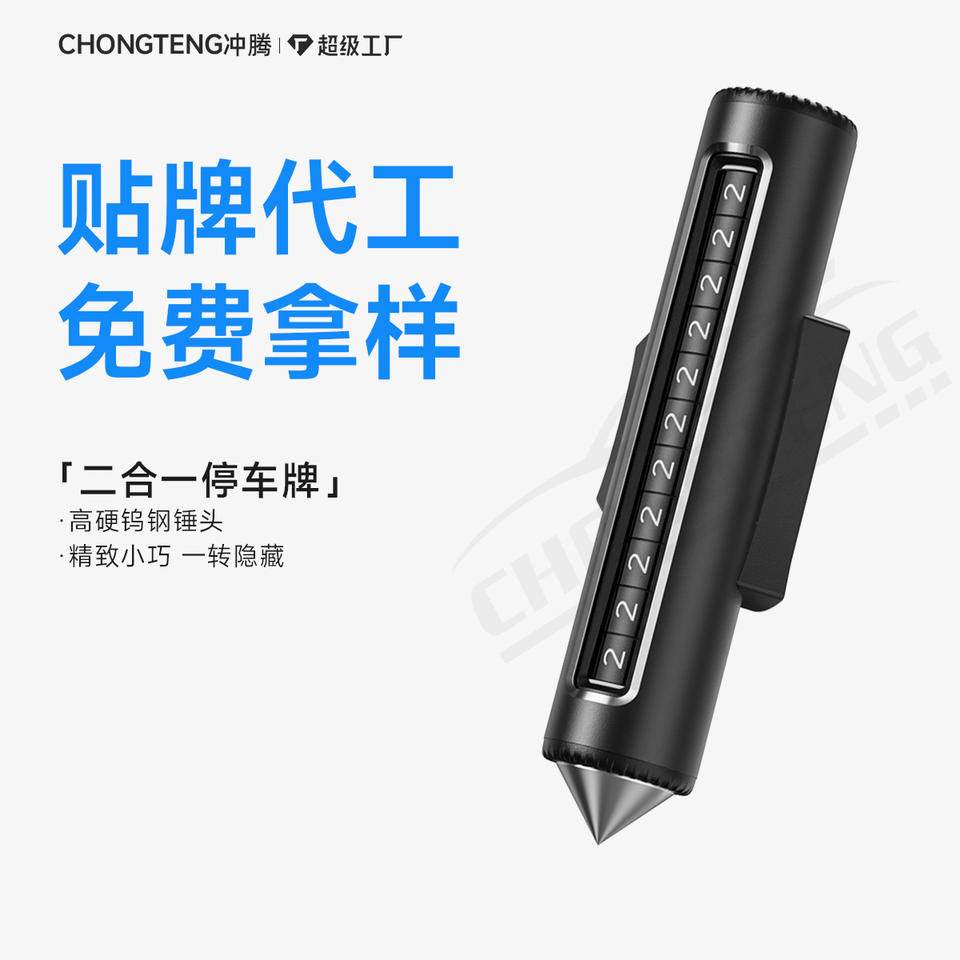 Placa de Matrícula Personalizada para Coche con Número de Teléfono, Placa de Estacionamiento Temporal 2 en 1, Rompeventanas Metálico con Rodillo Oculto