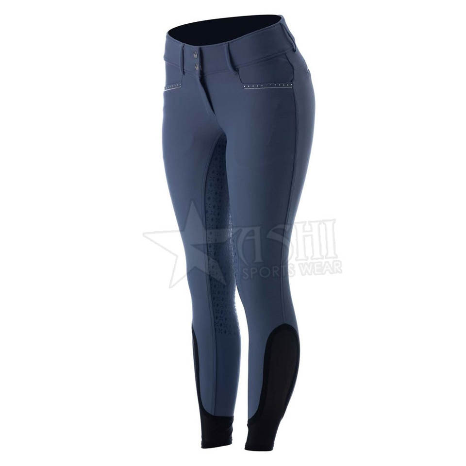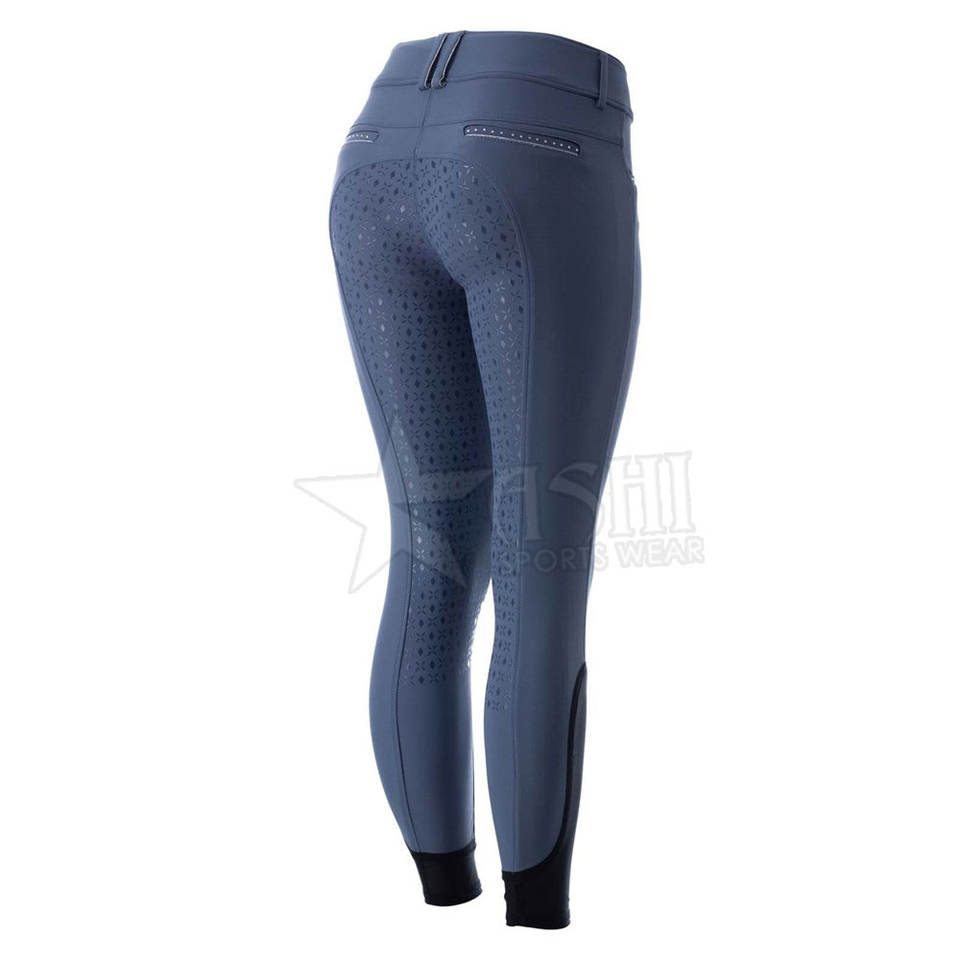 Pantalones de montar a caballo con cremallera y asiento completo con estampado de silicona personalizado de alta calidad, pantalones ecuestres para mujer