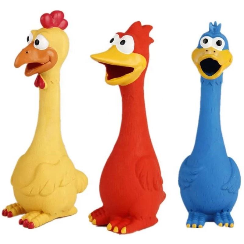 Juguetes chirriantes de silicona personalizados figura de acción de pato Gallo pollo gritando para niños juguetes ornamento