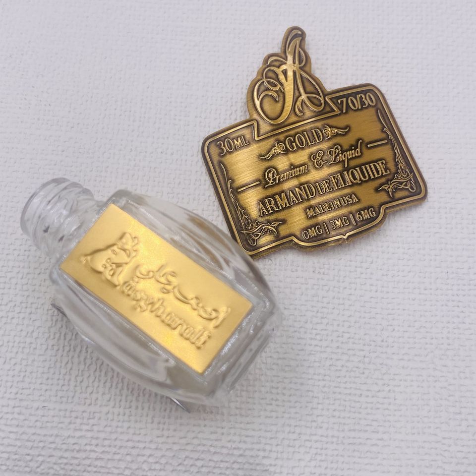 Pegatinas 3D de Metal dorado y plateado personalizadas, botellas de Perfume exquisitas de lujo, venta al por mayor, resistente al agua, gran oferta, etiqueta privada de perfume