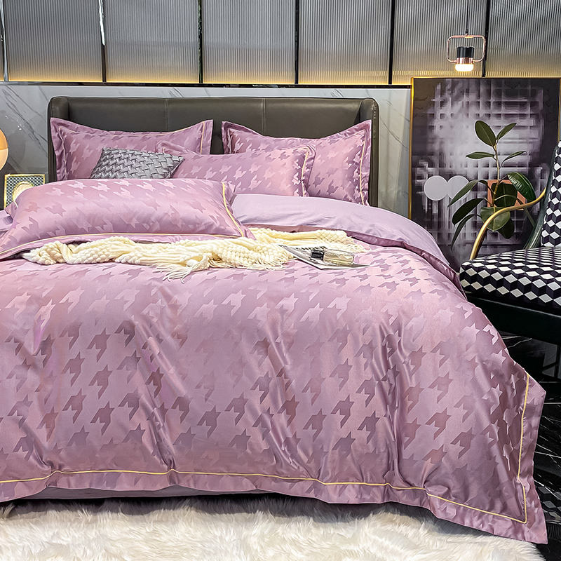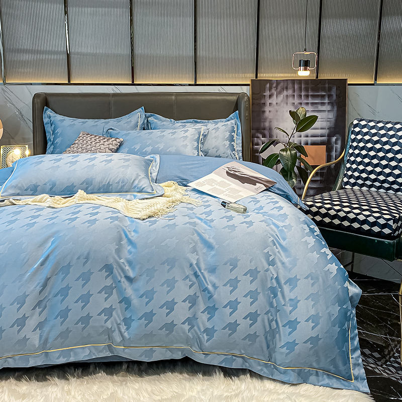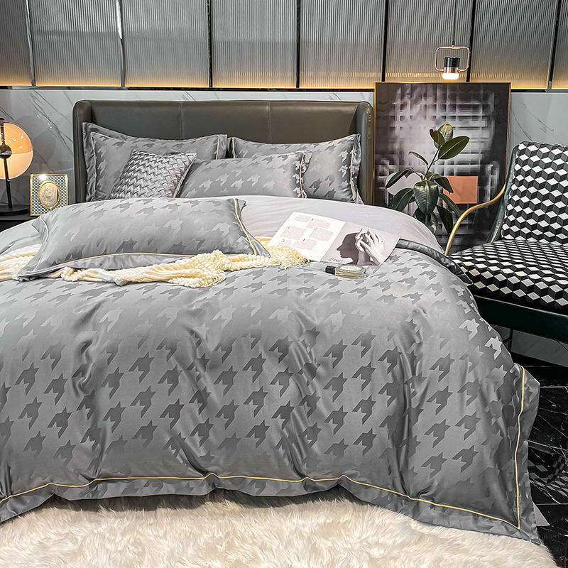Juego de Funda de Edredón de Cuatro Piezas de Algodón de Fibra Larga Simple Personalizado, Jacquard de Seda Lavada de 60S, para Uso Doméstico