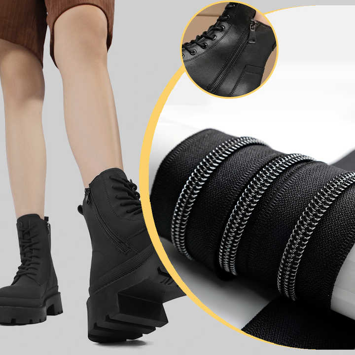 Rollos de cremallera de nailon de cadena larga negra de color de tamaño personalizado para zapatos de hombre y mujer Fábrica de suministro de cremalleras de alta calidad