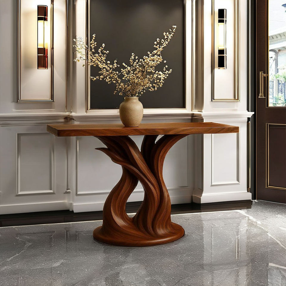 Mesa de Consola de Tamaño Personalizado, Diseño Inspirado en Madera Natural, Hecha a Mano, Decoración Única para la Entrada, Mueble de Madera Maciza a Medida, Regalo