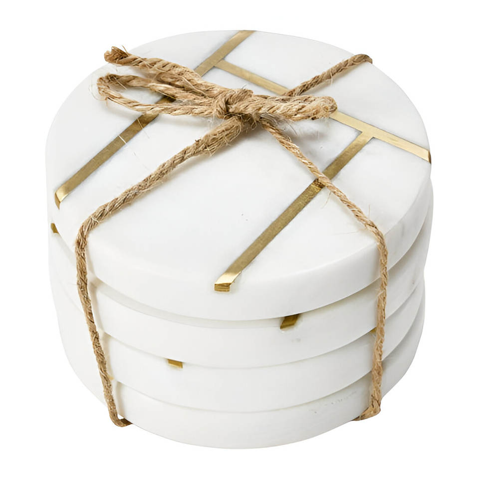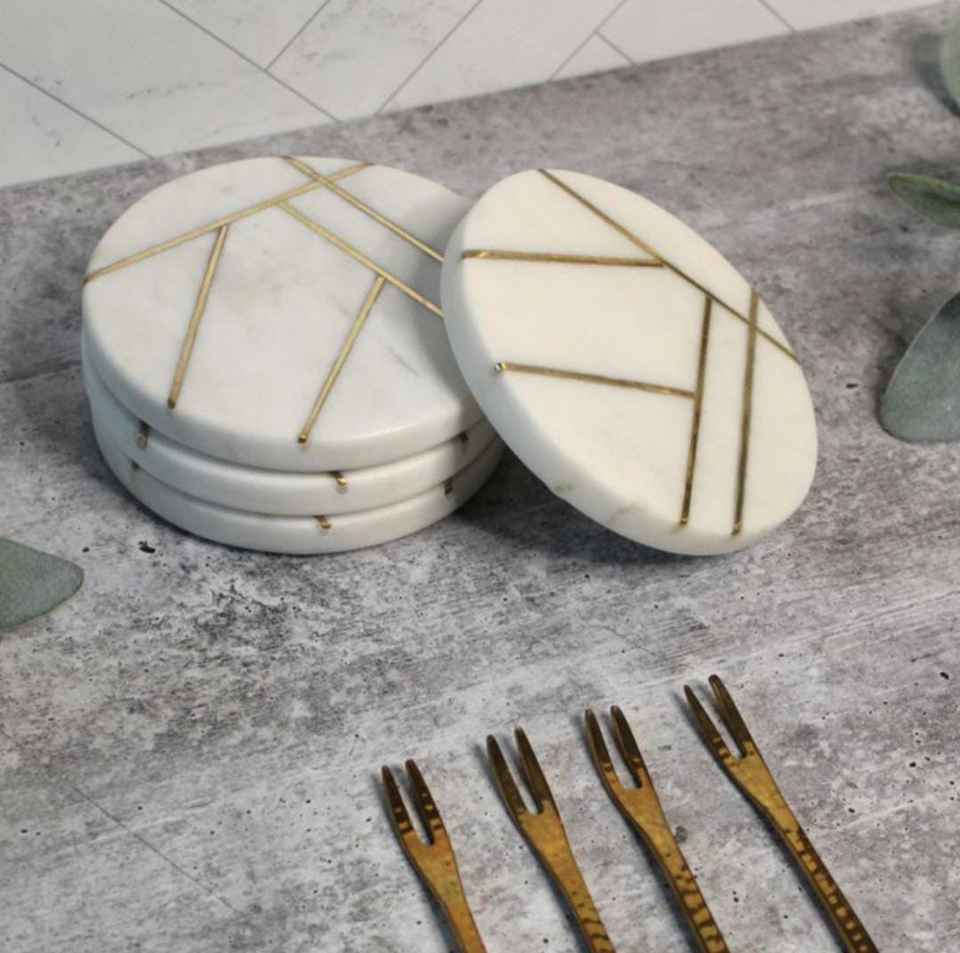 Juego de posavasos de piedra de mármol Natural hechos a mano de tamaño personalizado, accesorios de decoración de mesa de Hotel con incrustaciones de latón, alfombrilla/almohadilla a precio de fábrica