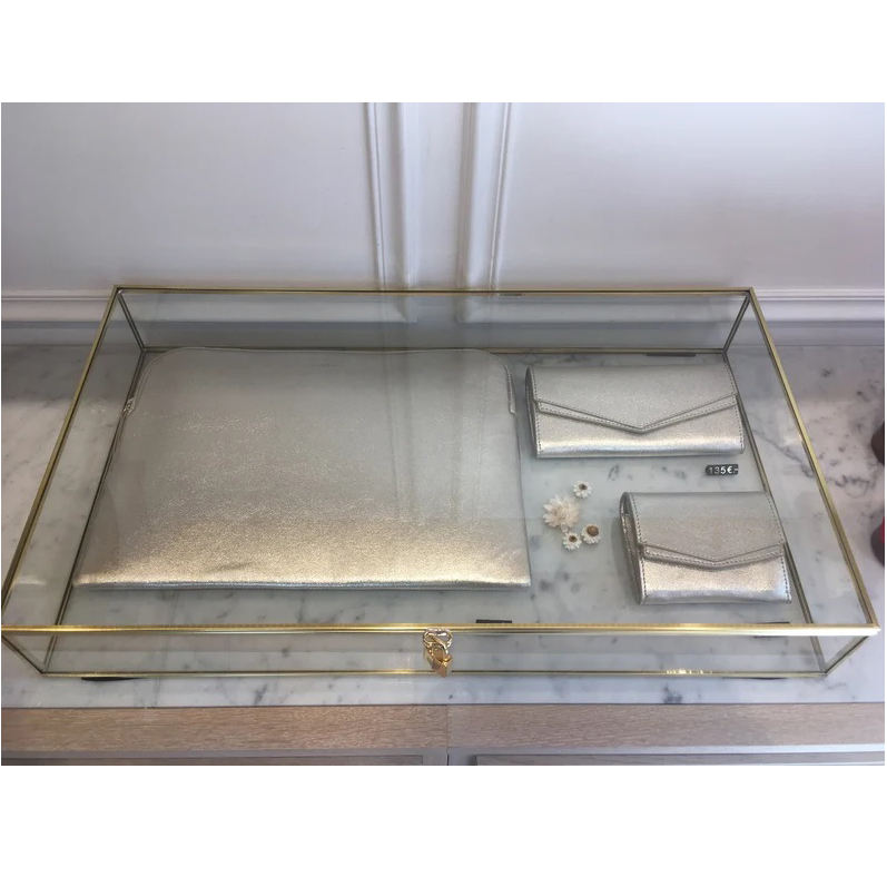 Tamaño personalizado Último producto Marco de latón Caja de almacenamiento de vidrio transparente Acabado de cobre con tapa Caja de vidrio Caja de joyería