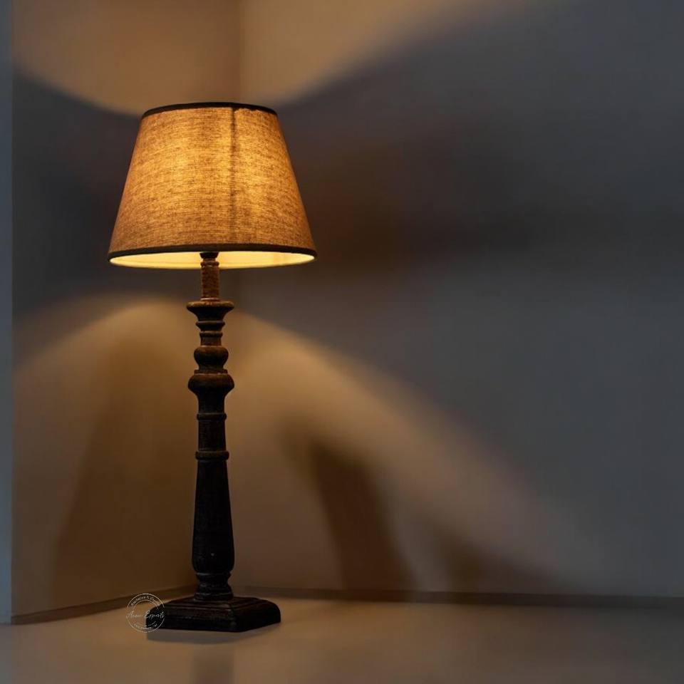 Lámpara de mesa de madera de tamaño personalizado con pantalla de tela redonda e iluminación decorativa con acabado de revestimiento blanco para el hogar