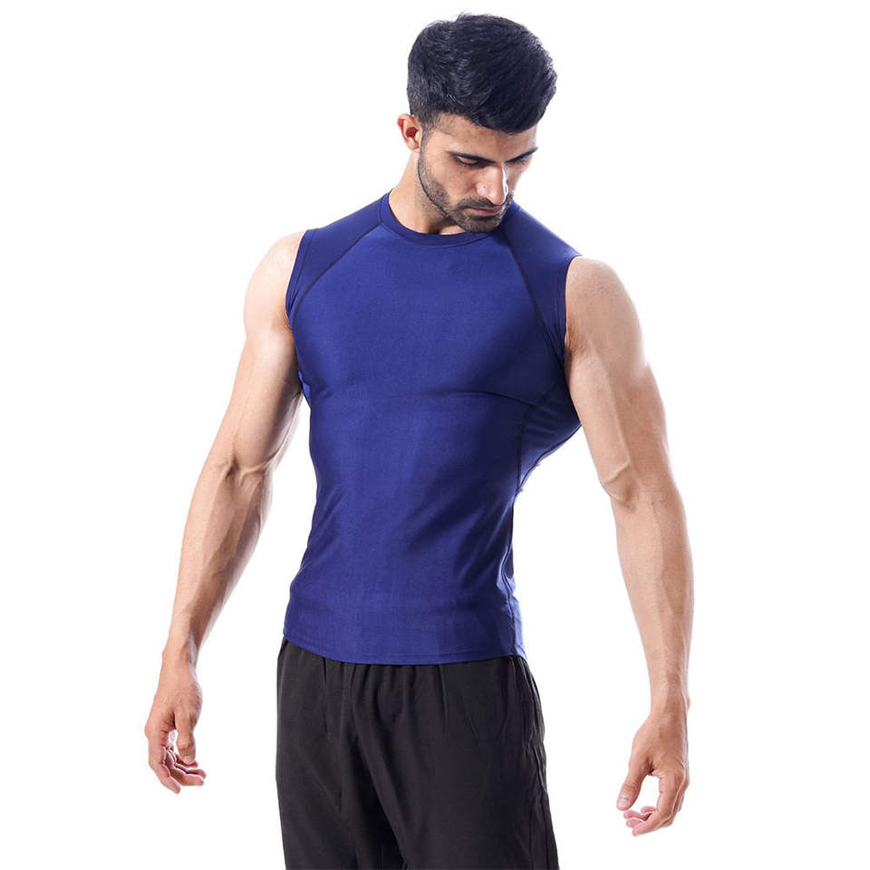 Camiseta sin mangas ajustada personalizada con cuello redondo y canalé, blanca, para hombre, de algodón, de alta calidad, hecha en Pakistán
